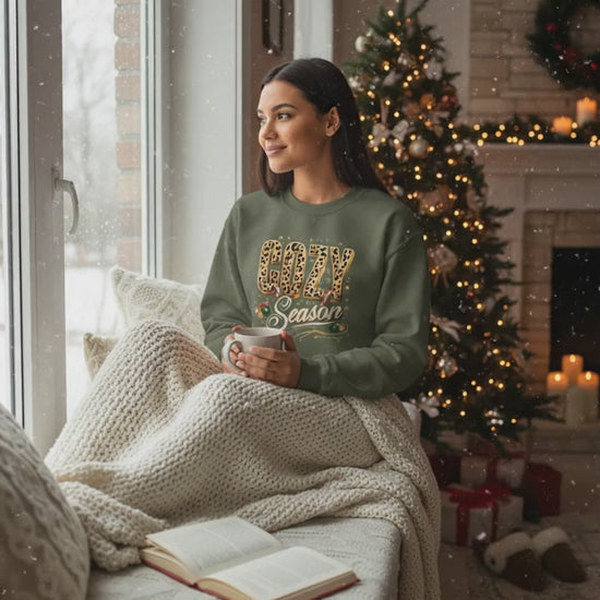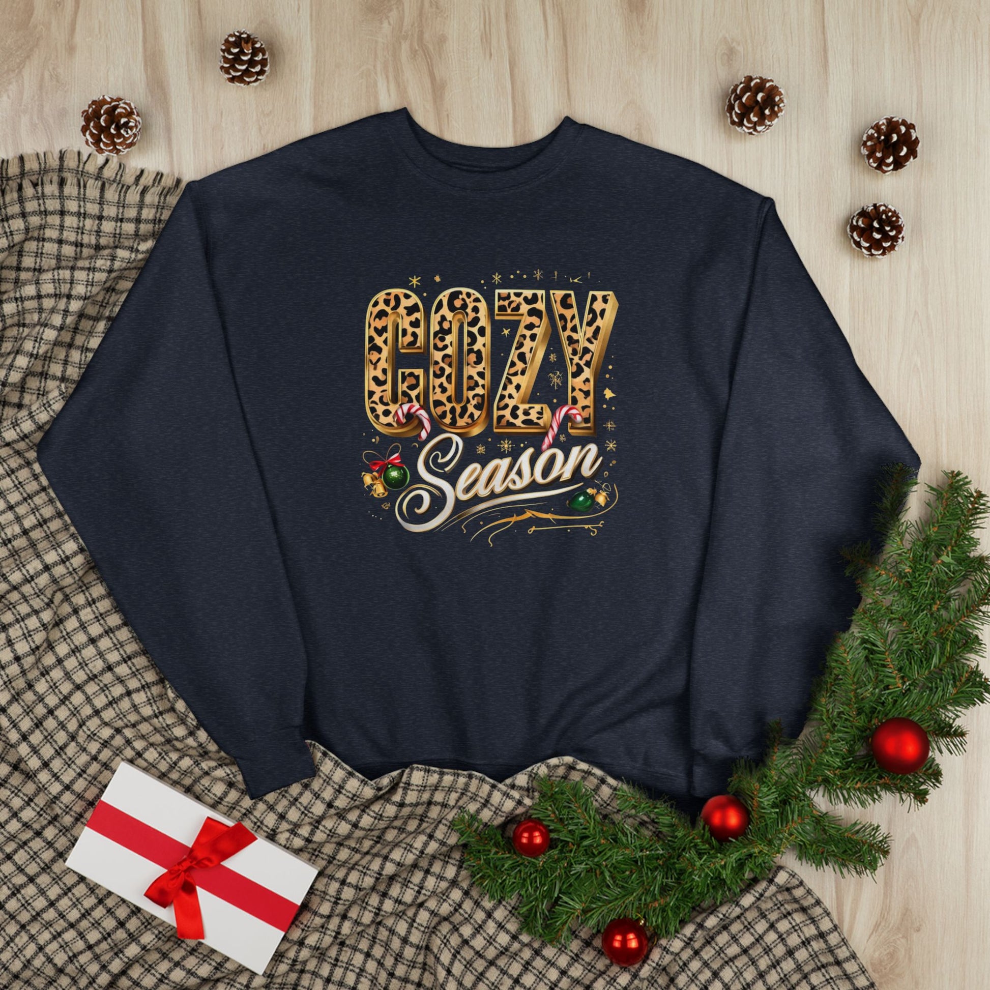 Cozy Season Sweatshirt | Leopard Print Holiday Crewneck | Cute Winter Christmas Sweater for Women & Men | Cozy Gift Idea