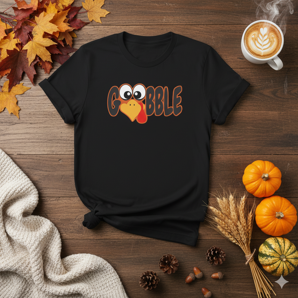 Gobble Turkey Graphic T-Shirt — Cute Thanksgiving Family Tee