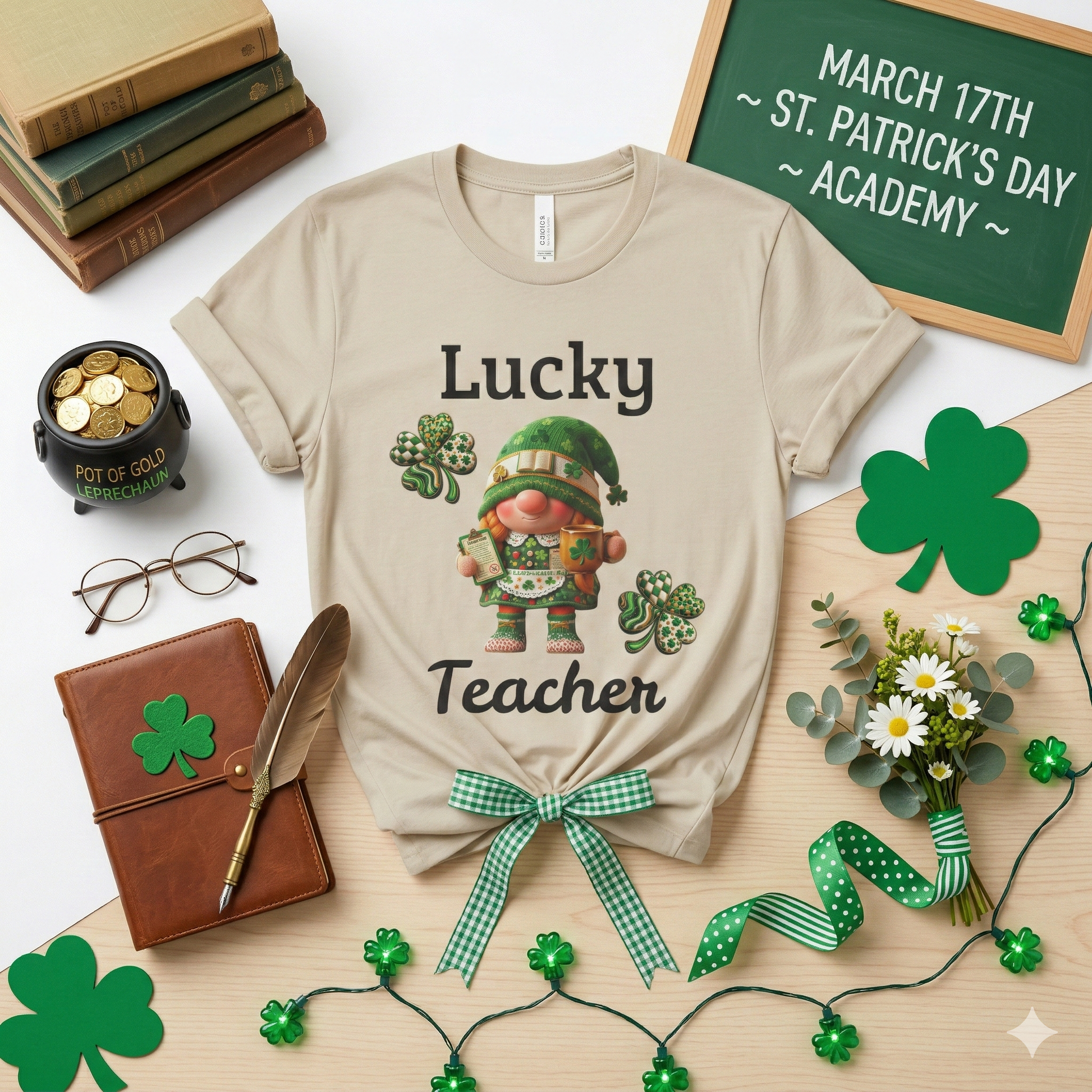 Lucky Teacher T-Shirt — St. Patrick’s Day Shamrock Gnome Tee